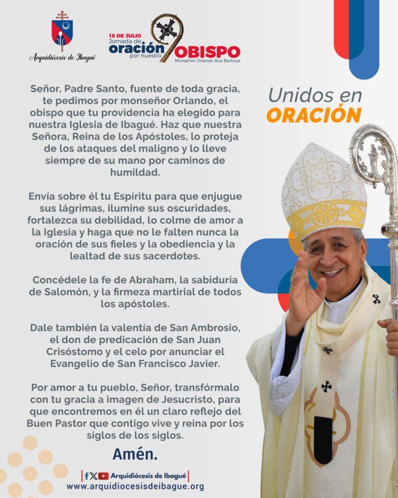 Jueves 18 de julio es la fecha señalada para la gran Jornada de oración por Monseñor Orlando Roa Barbosa, al cumplirse 4 años de su ejercicio pastoral en la Arquidiócesis de Ibagué.